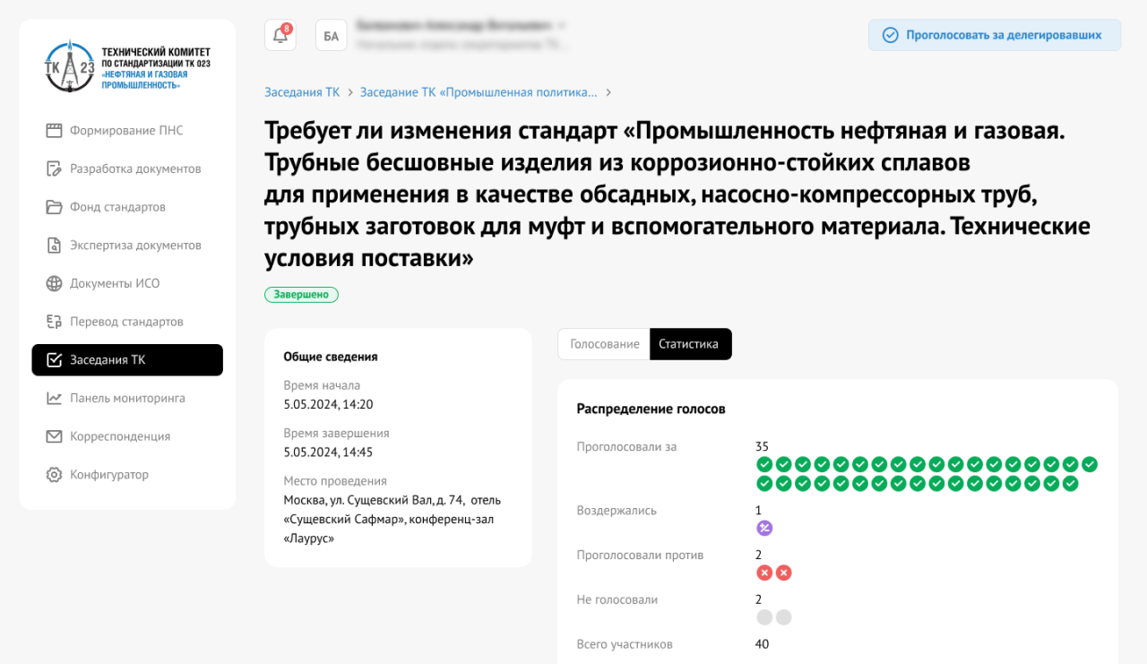 Создание интернет-портала технического комитета «Нефтяная и газовая промышленность»
